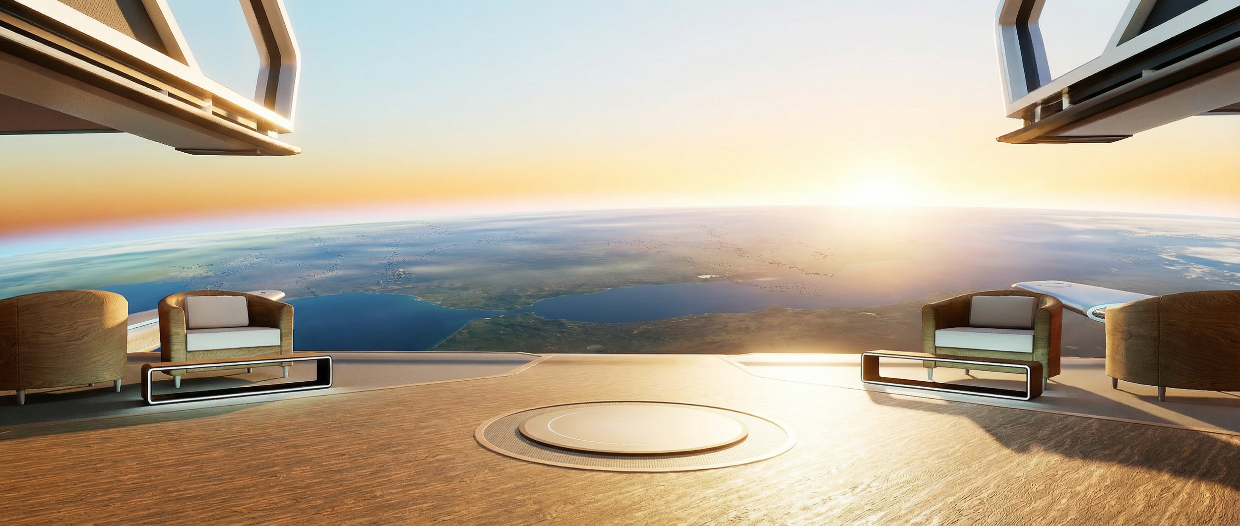 Space: A quiet deck on a space station, overlooking a distant planet